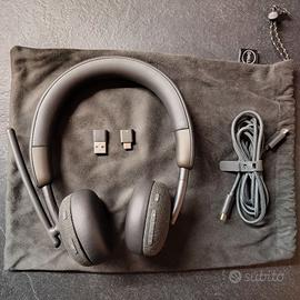 Descrizione da sito Dell: "Cancellazione del rumore passivo, Cavo rimuovibile, Microfono beamforming, Indicatore LED, Microfono girevole, Abbinamento Bluetooth, Protezione dell'udito, Cavo rimovibile, Multipoint, BusyLight, Codifica audio avanzata, Carica USB, Foldable, Secure, Indicatore batteria, Sidetone, Audio Bluetooth LE, Indicatore di chiamata LED, Confortevole, Assistente vocale. Comunica senza interruzioni grazie a queste cuffie senza fili dotate di microfono con cancellazione del rumore basata sull'AI, progettate per garantire produttività e comfort durante le videoconferenze nell'arco della giornata."