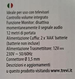 Alimentazione cuffie: 2 x "AAA" batterie