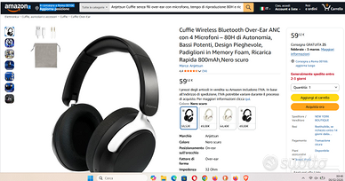 Queste cuffie wireless over-ear offrono un'esperienza d'ascolto avanzata grazie alla tecnologia Bluetooth 5.4 e a un sistema di cancellazione attiva del rumore (ANC) ibrida. Dotate di 4 microfoni e algoritmi intelligenti, sono in grado di abbattere fino al 90% del rumore ambientale (come traffico o motori aerei), ma permettono anche di attivare la modalità trasparenza per restare consapevoli dell'ambiente circostante quando necessario.