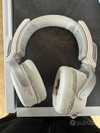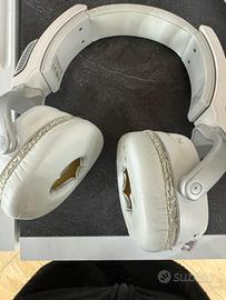 Cuffie Sony bluetooth e wireless bianche e supporto argento. I cuscinetti sono un po' consumati, spellati, ma le cuffie funzionano perfettamente,sono comprese di filo per caricare, senza spina e senza confezione originale.