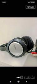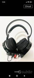 Cuffie Sony Wireless sovra auricolari senza fili, ideali per chi ha purtroppo difficoltà con l'udito o per chi vuole ascoltare la Tv di notte senza dare fastidio al proprio partner Si ricaricano appoggiandole sulla propria base di ricarica che si connette alla tua Tv tramite un cavetto jack incluso Hanno una portata di segnale anche attraverso i muri Fornite complete di base, cuffie, alimentatore, cavetti e pile ricaricabili nuove Spedizione velocissima e giornaliera