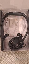 cuffie stereo Bluetooth per chi vuole il massimo comfort mentre pratica attività sportive. Fornito di caricabatterie e scatola originale con libretto istruzioni.
