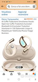 Auricolari con Traduttore Simultaneo in 156 Lingue: Queste cuffie traduzione simultanea sono dotate di un'app avanzata di traduzione AI, nessun abbonamento richiesto, utilizzabili per sempre. Il nostro traduttore vocale istantaneo multilingue supporta 156 lingue con traduzione in tempo reale. Che sia per viaggi, conferenze internazionali, conoscere nuove persone o studiare all'estero, potrai parlare, ascoltare e comunicare facilmente con il nostro traduttore simultaneo vocale, raggiungendo una comunicazione veramente senza barriere.