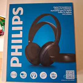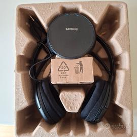 Cuffie senza filo per la ricezione dell'audio TV digitale a distanza, con trasmettitore da collegare al televisore con cavo Jack da 3,5, compreso nella confezione. Si ricaricano con cavetto usb, anch'esso contenuto nella confezione. Di facile installazione, mai usate, comprate a febbraio 2026, vendo per mancato utilizzo, allegando lo scontrino del rivenditore per poter godere della garanzia di 2 anni.