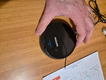 collegata all'alimentazione e al dispositivo tramite cavo AUX. Successivamente basta accendere le cuffie e si connettono in automatico. La base dispone anche di un cavo per caricare le cuffie,