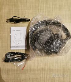Incluso cavo di ricarica e aux (in caso di necessità di audio cablato). Batteria 500 mAh (55 ore in ascolto).