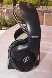Sennheiser RS 120 II. Cuffia RS wireless, sovraurale, aperta. Riproduzione del suono chiara e dettagliata con bassi potenti. Ideale per musica e TV. Libertà senza fili con ricezione attraverso pareti e soffitti, fino a 150 metri. Controlli volume e sintonizzazione direttamente sulle cuffie. Trasmettitore multifunzione con funzione di carica/ (trasmettitore, base di carica e supporto di appoggio). Montaggio a parete opzionale del trasmettitore.