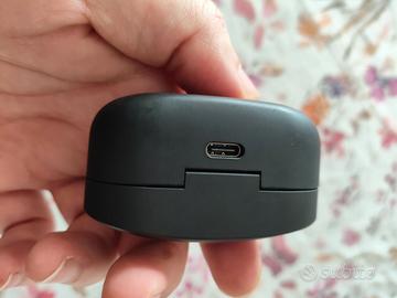 Tutto come da foto le due cuffiette e la sua scatolina per caricarle...per caricarle basta un filo USB-C di qualsiasi modello da collegare al PC,alla corrente o anche in macchina.