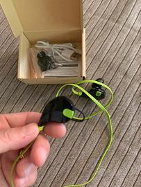 Cuffiette wireless da sport Color verde acido Nuove mai usate, dotate di gommini di ricambio e cavetto per la ricarica