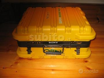 Kit completo Sony "Super Marine Pack" modello MPK-TRS, perfetto, mai allagato, come nuovo - adatto per telecamera Sony 8 mm. Hi band TR 705 - completo di faretti con relative batterie ricaricabili, bracci di supporto, lente addizionale grandangolare, filtro rosso e supporto comandi a raggi infrarossi, con valigetta custodia antiurto. Operativo fino a 75 mt. di profondità.