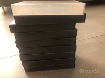 Custodie videocassette, 8 nere ed una bianca/trasparente.