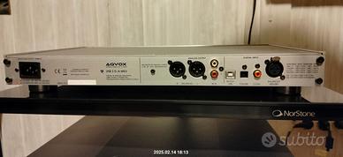 Vendo DAC high-end AQVOX USB 2 D/A MKII. Condizioni funzionali ed estetiche perfette. Caratteristiche tecniche: COAX-S/PDIF : 24bit/192kHz AES/EBU : 24bit/192kHz TOSLINK : 24bit/96kHz USB : 16bit/48kHz 2 x BurrBrown PCM1796 Delta-Sigma 24-bit converter Uscita analogica RCA e bilanciata Upsampler 192kHz disinseribile. Spedizione con imballo professionale non inclusa.