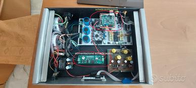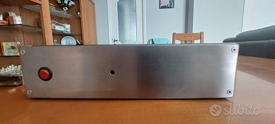 Scheda audio xmos XMOS XU208 32Bit 384kHz DXD DSD256 DSD reclock SPDIF USB I2S in/out PCB Null - Optical SPDIF Output Socket: Null - USB Socket: Type-B (traditional) con alimentazione dedicata . Frontale in acciaio inox da 2 mm con pulsante accensione (rosso) e selettore di sorgente (nero),coperchio in vetro fumè da 8 mm asportabile solo sollevandolo con fori di areazione a rombo e alloggi dedicati sempre in inox .