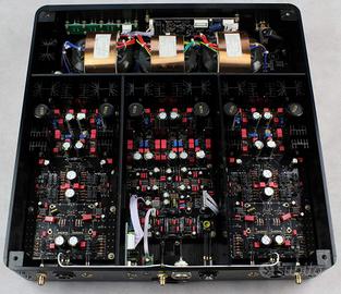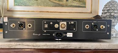 Design completamente bilanciato realizzato con stadi analogici discreti senza OPA e condensatori di coppia nei canali del segnale. Stadio di uscita analogico ACSS senza feedback. Utilizza tre trasformatori R-core (135 W totali) con alimentatori separati per la parte digitale, canale destro e canale sinistro. Sono utilizzati più di 50.000 uf di condensatori NOVER di qualità audio per garantire un'alimentazione ampia e fluida. Un totale di 15 gruppi di alimentazione di classe A vengono utilizzati per purificare l'alimentazione. Per ottenere un elevato rapporto segnale/rumore, il circuito di controllo è alimentato da un regolatore separato. Utilizza la maggior parte dei componenti di fascia alta e transistor di corrispondenza esatta. Risoluzioni supportate 16/24 bit con supporto della frequenza di campionamento 44,1 kHz, 48 kHz, 88,2 kHz, 96 kHz, 176,4 kHz, 192 kHz Supporta fino a 24 bit/192 kHz. Supporta sovracampionamento 2X, 4X e 8X.