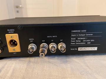Vendo DAC CAMBRIDGE AUDIO MAGIC 1 in ottime condizioni, uscite xir e rca ingressi bnc,converte a 44.1 e 48 khz. 200 +ss RIBASSO 180+ss No trattabile Compatibile con arcam audiolab exposure naim onix wadia topping smsl musical fidelity sony denon pioneer