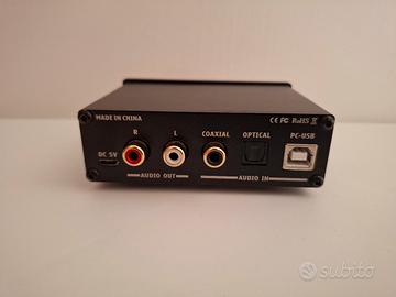 2 uscite analogiche: jack cuffie da 3,5 mm e RCA.