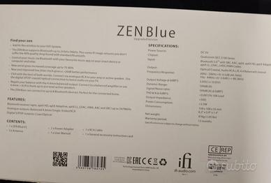 SPLENDIDO DAC IFI ZEN BLUE V2 + TRASMETTITORE BLUETOOTH HI FI IN CONDIZIONI PARI AL NUOVO, COMPLETI DI SCATOLI E CAVI ORIGINALI VENDO IN BLOCCO PER CAMBIO TIPOLOGIA. OTTIMA SOLUZIONE PER COLLEGARE QUALSIASI FONTE DI SUONO ALL'IMPIANTO HI FI DI CASA PER ASCOLTO MUSICA IN ALTA RISOLUZIONE. NO PERDITEMPO. SPEDIZIONE DISPONIBILE