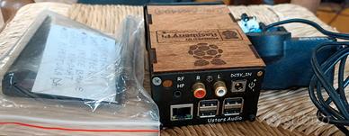 Come da intestazione vendo questo kit completo di Dac su Raspberry. Il Kit è adatto per smanettoni e per chi ha esperienza con il software Volumio che di fatto gestisce il DAC. E' un DAC di fascia alta tipo AK4493 (scheda già inserita nel controllore Raspberry e nel contenitore) riceverete anche in omaggio un'altra scheda DAC economica, che potete utilizzare per altri esperimenti. L'hardware è basato sul ben noto controllore Raspberry. Nella scheda è già presente la scheda micro SD da 32 GB della Toshiba dove è già caricata una precedente versione di Volumio (trovate in rete l'ultima versione di Volumio che va configurata voi con i vostri dati, seguendo le info on line). La scheda funziona sia con connessione Lan (consigliata) che in modalità Wireless. Per migliorare la qualità del segnale Wireless la copertura metallica è stata sostituita con quella in compensato serigrafato con il Laser). In sintesi riceverete : Contenitore con all'interno Raspberry e scheda DAC AK4493 preinstallati + DAC aggiuntivo per esperimenti + Scheda SD da 32 Gb già inserita con Volumio preinstallato, ma da riconfigurare con i vostri dati + Alimentatore da 5V+ Coperchio originale metallico.