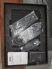 dac topping 70 prima versione musicalissimo . usato poco e in perfetto stato elettrico e fisico, completo di scatola e tutti gli accessori: - DAC - Telecomando - Cavo USB - Cavo di alimenetazione - Istruzioni Questo modello utilizza un'architettura basata su chip AKM ed è noto per il suo suono equilibrato. • Chip DAC: 2x AK4497 (uno per canale). • Interfaccia USB: XMOS XU208. • Ricevitore S/PDIF: AK4118 (ultra-low jitter). • Supporto Formati: Fino a PCM 32bit/768kHz e DSD512 Native via USB. • Ingressi: USB, AES/EBU, Coassiale, Ottico, I2S (via HDMI). • Uscite: XLR bilanciata (4Vrms) e RCA single-ended (2Vrms). • Dimensioni: 25 x 19,5 x 5 cm.