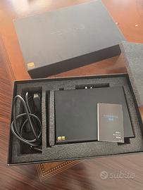 Vendo Topping D90, DAC ad alte prestazioni in condizioni praticamente pari al nuovo, completo di scatola originale, imballi, antenna, cavo di alimentazione e telecomando perfettamente funzionante, come visibile dalle foto. È un DAC che ha fatto parlare molto nel mondo audiofilo perché, pur essendo un prodotto cinese, offre una qualità costruttiva, una trasparenza e una precisione sonora normalmente associate a convertitori di fascia ben più alta. Il suono è estremamente pulito, dettagliato e neutro, ma senza risultare freddo o affaticante: restituisce una scena ampia, grande separazione degli strumenti, ottima microdinamica e una gamma bassa controllata. Ideale per chi vuole fare un salto serio nella riproduzione digitale senza spendere cifre da DAC esoterico. Molto completo anche sul piano dei collegamenti: dispone di ingressi USB, coassiale, ottico, AES, I2S/HDMI e Bluetooth, con uscite sia RCA sia XLR bilanciate, quindi si adatta facilmente sia a impianti hi-fi tradizionali sia a catene audio più evolute. Perfetto come upgrade per streamer, PC, tablet, lettori CD usati come meccanica o sorgenti digitali di qualità. Prodotto tenuto con grande cura, e utilizzato pochissimo.