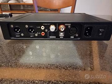 • Funzionalità Aggiuntive: Può funzionare come DAC, preamplificatore o amplificatore per cuffie dedicato. Dispone di un display che mostra l'input, il volume, la frequenza di campionamento, e la modalità di output.