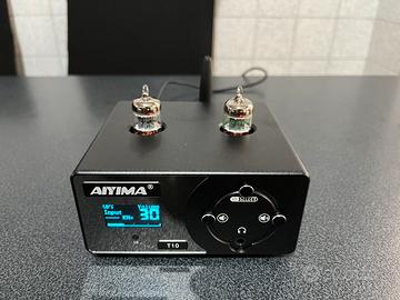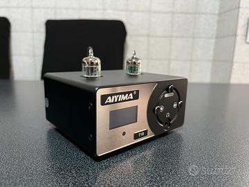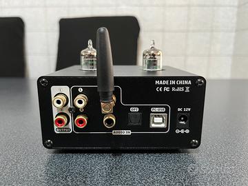 Vendo bellissimo convertirore DAC valvolare Aiyima T10. Dotato di telecomando originale. Interessante la possibilita selezionabile da telecomando di usare lo stadio di uscita valvolare oppure lo stadio di uscita a stato solido (bypassando le valvole). Ingressi: RCA di line, Ottico, Coassiale, Bluetooth, USB per PC. Uscite: di linea RCA e per ciffie (minijack frontale) Chipset DAC: ES9018K2M Frequenza di campionamento PC-USB: 24 bit/192 khz, 16 bit/192 khz, 24 bit/96 khz, Sistema operativo PC-USB:Windows XP / VIsta7/8/10 / Max OS/MAC/Linux Frequenza di campionamento Bluetooth/ottica/coassiale: 24bit44.1khz/24bit192khz/24bit192khz Chip Bluetooth:QCC3031, Bluetooth 5.0, supporto aptX, aptxHD. Modello valvole: JAN5725 che possono essere sostituiti con: 6Ж1п,6AK5,6K4,EF95.6J1,GE5654, ecc. Impedenza cuffie:16-300Ω Suona veramente molto bene, incredibile per il prezzo. Prodotto praticamente nuovo, usato pochissimo giusto per la curiosità di provarlo. Vendo per esubero di elettroniche simili. Perfetto sia esteticamente che elettricamente. Completo di tutti gli accessori e dell’imballo originale. Suona molto bene rapporto qualità prezzo altissimo. Possibile spedizione o ritiro a mano. Se sei interessato a prodotti simili dai un’occhiata agli altri annunci che ho sul profilo.