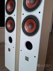 Diffusori Dali Zensor 5, riverniciati di bianco (colore precedente nero), il prezzo basso tiene conto di questo fattore. Lavoro eseguito in modo hobbistico, quindi finiture non perfette ma più che accettabili. Altoparlanti perfettamente integri, tipico suono dali, molto dettagliato. solo consegna a mano, dopo visione. Non ho gli imballi. Euro 190