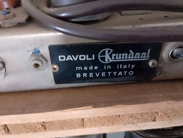 Testata/ampli valvolare originale Davoli Krundaal (ex Krundaal), made in Italy brevettato. Valvole testate e funzionanti (incluse EL504 Philips rare), suono caldo vintage. Alimentatore separato. Da rifare condensatori (consigliato per sicurezza). Pezzo da collezione/restauro.
