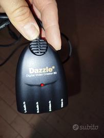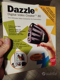 Digital Video Creator 80 di Dazzle Multimedia è il connettore video definitivo per videocamere, dotato di porte audio/video integrate e software di editing video facile da usare. Cattura video da una videocamera, TV o VCR. Dazzle MovieStar 5 ti consente di catturare e modificare il tuo video, tagliare scene indesiderate e aggiungere transizioni 3D, titoli, audio di sottofondo, narrazione vocale ed effetti speciali in stile hollywoodiano.