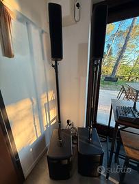 Vendo numero 2 dB Technologies ES602 utilizzabili singolarmente come sistema mono compatto o in combinazione con due ES602 come sistema stereo più potente. Acquistate 03/09/2025 , ricevuta disponibile per garanzia preferisco ritiro a mano a Perugia , qualsiasi prova Subwoofer es602 Subwoofer Bass Reflex da 10" Amplificatore di potenza digitale bi-amplificato da 800 W DSP a 24 bit con 8 preset Limitatore Dual Active Ingresso combinato XLR/jack per segnali microfonici/di linea Uscita parallela XLR Ingresso stereo RCA Uscita Speaker Twist per il satellite es602 Dimensioni: 300 x 400 x 430 mm Peso: 14,2 kg Top es602 4 unità da 3" per frequenze medio-alte Collegamento Speaker Twist Dimensioni: 95 x 360 x 137 mm Peso: 1,9 kg