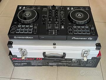 DDJ 400 Pioneer, in perfette condizioni. Completa del Cavo USB, dei Manuali con la Scatola originali e di una Valigetta rinforzata con cerniere con serrature e chiavi per il trasporto della console in tutta sicurezza. Utilizzabile tramite il Software Rekordbox, con la relativa licenza sbloccabile attraverso il collegamento della console al dispositivo utilizzato (pc, macbook, laptop, notebook...) nel quale, ovviamente, andrà installato Rekordbox, scaricato dal sito della casa produttrice, anche attraverso i codici QR presenti nei manuali. Usata davvero poco e solo in casa. Mantenuta in maniera impeccabile e perfettamente funzionante.