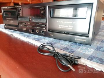 Vendo Deck Pioneer CT-W606DR in perfette condizioni estetiche e funzionali, usato poco, avrà registrato una ventina di cassette, tenuto collegato ma non più utilizzato, pertanto è stato rimosso, pulito e imballato. Dispone del libretto di istruzioni in italiano e del cavetto di link per essere controllato da telecomando, una volta collegato ad un amplificatore Pioneer dotato dello stesso sistema. Non dispongo dell'imballo originale ma ne fornisco uno adeguato.