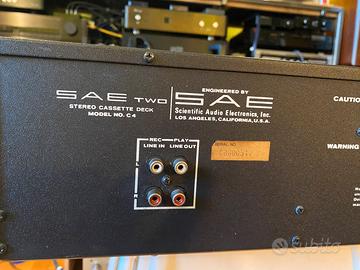 Vendo piastra cassette SAE Two C-4, top di gamma della Casa Statunitense. Esteticamente perfetta, riproduce perfettamente (come da foto) ma fatica a riavvolgere il nastro, si rende quindi necessario sostituire la relativa cinghia, lavoro piuttosto semplice. Il prezzo ne tiene conto.