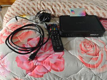 Vendo decoder DIGIQuest Q90, ricevitore combo di ultima generazione per 4K Ultra HD. L'apparecchio permette di vedere sia i canali del Digitale Terrestre (DVB-T2 HEVC Main 10) che quelli Satellitari (DVB-S2). Certificato tivùsat: Ideale per chi ha problemi di segnale con l'antenna classica e vuole usare la parabola. Risoluzione 4K UHD: Qualità video eccezionale sui canali supportati. Funzione Registrazione & Mediaplayer: Grazie alle porte USB (inclusa una USB 3.0 ad alta velocità), puoi registrare i tuoi programmi preferiti o guardare film da chiavetta. Connessione LAN: Per aggiornamenti e servizi interattivi. Il dispositivo è in condizioni estetiche e funzionali perfette. Incluso alimentatore originale e telecomando.". Inclusa tessera TV sat incluso cavo lan cat.8