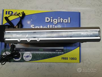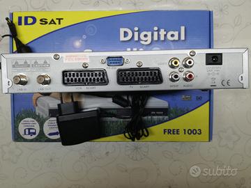 Decoder satellitare digitale della ID SAT modello FREE 1003, perfettamente funzionante ed in ottimo stato, con telecomando, per la visione dei canali in chiaro, 4000 canali. funziona a 220 volt o a 12 volt corrente continua, adatto quindi all'uso in auto o camper. Dotato di alimentazione da attacco accendisigari. Posso spedire con spese a carico dell'acquirente.