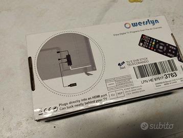 Decoder Digitale Terrestre 2025 - OWERSLYN Decoder DVB-T2, HD 1080P H.265 HEVC Main 10 Bit, TV Stick con Uscita HDMI/AV, HDMI CEC, USB Multimediale, Funzione PVR, Telecomando Infrarossi 2in1
