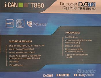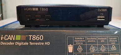 Vendo, causa inutilizzo, decoder digitale terrestre I-CAN T860,HD, ordinamento automatico dei canali,riproduzione di file video e audio tramite USB.