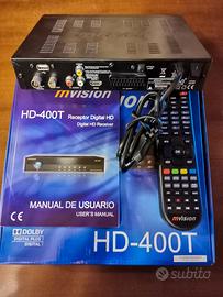 COME DA FOTO DECODER DIGITALE TERRESTRE HD HDMI USB MVISION HD-400T CON PRESA SCART ED USCITA HDMI INGRESSO/USCITA USB LETTORE SMART CARD. PERFETTAMENTE FUNZIONANTE POCO USATO SENZA DANNI E/O GRAFFI. TUTTE LE SPECIFICHE IN FOTO. MISURE : CM 20 X CM 15 X CM 4. Consente la visione di Tutti i Canali in HD.