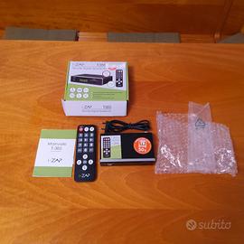 vendo decoder digitale terrestre HD ditta I-ZAP mod .T385 con porta USB per riproduzione file multimediali sintonizzatore DVB-T telecomando universale utilizzabile anche per la TV cm15x9x3h.nuovo con scatola e istruzioni