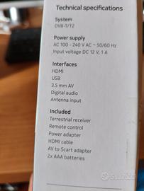 Decoder per digitale terrestre Nokia, protocollo DVB T/T2. È nella sua confezione originale in quanto comprato e mai utilizzato, compreso di tutti gli accessori di cui alla foto.