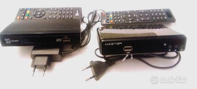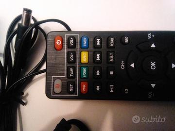 Decoder digitale terrestre t2 hevc, con alimentatore esterno, funzionante con alimentatore 5 volt 1 .0 A, pertanto utilizzabile in auto con presa a 5 w o con USB TV, 25 euro (compreso cavo adattatore USB). Altro decoder t2 hevc con telecomando con apprendimento, per utilizzarne uno solo per TV e decoder. 19 euro. No spedizione.