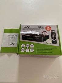 Decoder Digitale Terrestre T385 marca i-ZAP usato un paio di volte con la scatola originale , in ottime condizioni tipo DVB-T2, HD 1080P HEVC Main 10 Bit, HDMI CEC TV | Uscita HDMI/AV e USB Multimediale. Blocco bambini manuale d’uso