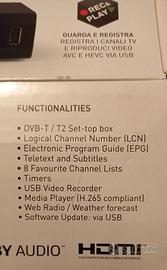 TELESYSTEM T6808E T2 HEVC decoder, videoregistratore usb, media player. DVB-T e DVB-T2 presa SCART, HDMI, ethernet Idoneo per i segnali digitali attuali.