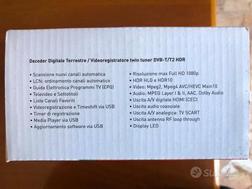 - Decoder PVR DVB-T2 HEVC HD HDR HLG con doppio tuner.