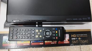 Decoder digitale terrestre Hd Samsung, modello SMT-T5040. Perfettamente funzionante, doppia smart card, 1 presa scart, 1 presa Hdmi , 1 presa usb, 1 presa ethernet. Completo di telecomando multifunzione, sia Tv che decoder. L' unico difetto, (che non ne compromette il funzionamento) il cavo del alimentatore è stato riparato. Vendo 20 euro.