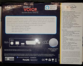 - Controllo vocale con Amazon Echo: Acquistando una dongle Wi-Fi Digiquest accedi a tutte le funzioni del decoder, inclusi accensione, spegnimento, volume e cambio canali, utilizzando comandi vocali quando collegato a un dispositivo Echo.