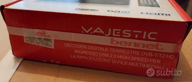 IMBALLO ORIGINALE ANCORA SIGILLATO Decoder Digitale Terrestre DVB-T2 HEVC MPEG-4 DVB-T HD. HD Nero - DEC-665HD Formato del segnale digitale: DVB-T HD,DVB-T2 HD HDMI 1.4, USB 2.0 Consumi: 5 W, Tensione di ingresso AC: 100 - 240 V, Frequenza di ingresso AC: 50/60 Hz. Larghezza: 125 mm, Profondità: 87 mm, Altezza: 32 mm