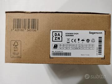 Vendo decoder Sagemcom DTIW3930 DAZN TV Box originali, nuovi, imballati e mai utilizzati. Si tratta di un modello molto performante e versatile, configurato per funzionare come Android TV Box con accesso alle principali app di streaming e compatibile anche con digitale terrestre DVB-T2 tramite l’ingresso antenna integrato. Perfetto per l’uso domestico o professionale: offre prestazioni fluide, immagini 4K nitide, e connessione stabile grazie a Wi-Fi dual band e porta Ethernet. ⚙️ Caratteristiche principali Sistema operativo: Android TV 10 Risoluzione massima: 4K Ultra HD (2160p) Supporto HDR e HLG Ingresso antenna DVB-T/T2 per digitale terrestre Wi-Fi Dual Band 2.4 / 5 GHz + Ethernet LAN Processore: Amlogic S905X2 Quad-Core ARM Cortex-A53 GPU: Mali-G31 MP2 RAM: 2 GB DDR4 Memoria interna: 8 GB eMMC Bluetooth integrato 1x Porta USB + slot micro SD Uscita audio ottica S/PDIF Uscita HDMI 2.0 Chromecast e Google Assistant integrati 📦 Contenuto della confezione Decoder Sagemcom DTIW3930 Telecomando originale (con batterie) Alimentatore Cavo HDMI Cavo LAN Manuale e confezione originale sigillata 📺 Compatibilità app ✔️ YouTube ✔️ RaiPlay ✔️ Mediaset Infinity ✔️ Disney+ ✔️ Kodi ✔️ IPTV Player ✔️ Google Play Store (Android TV) ⚠️ Nota: Netflix e Prime Video non compaiono nel Play Store di questo modello. È possibile installarle tramite file APK esterni, ma la compatibilità non è garantita. 💡 Vantaggi Nuovo, imballato e mai usato Prestazioni elevate e fluide Supporto 4K HDR, Wi-Fi 5GHz e uscita ottica S/PDIF Compatibile con digitale terrestre DVB-T2 Ideale per streaming, IPTV e uso multimediale Assistenza post-vendita disponibile 💰 Prezzo Sconti su acquisti multipli o in stock (contattami per info e quantità) 📍 Ritiro in zona disponibile 🚚 Spedizione tracciata in tutta Italia ✅ Prodotti nuovi, performanti e completi di tutto. Pronto all’uso appena collegato alla TV.