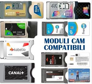 N.B. Per la Visone dei canali Tivusat occorre un Modulo CAM/CARD (OPZIONALE) compatibile con la cam tivusat 4k con scheda black ed altri abbonamenti (vedi foto)