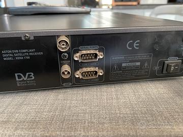 Vendo ricevitore decoder satellitare ASTON XENA 1700 con telecomando, perfettamente funzionante. Sistema di doppia codifica SECA e VIACESS con possibilità di installare una CAM supplementare (non fornita). Audio digitale, 2 prese scart, uscita/entrata video digitale, line in/out per il segnale dell'antenna tradizionale e per quella della parabola, 2 prese seriali per modem esterno e per collegamento PC. Ottima gestione dei canali, possibilità di creare 8 liste preferite per i vari pacchetti. E' abilitata la funzione del cambio lingua e della funzione EPG (come nel Gold Box di D+) di tutti i canali sintonizzati che lo supportano. Funzione freeze e zoom, display frontale con RDS e nome canale/funzione in corso.